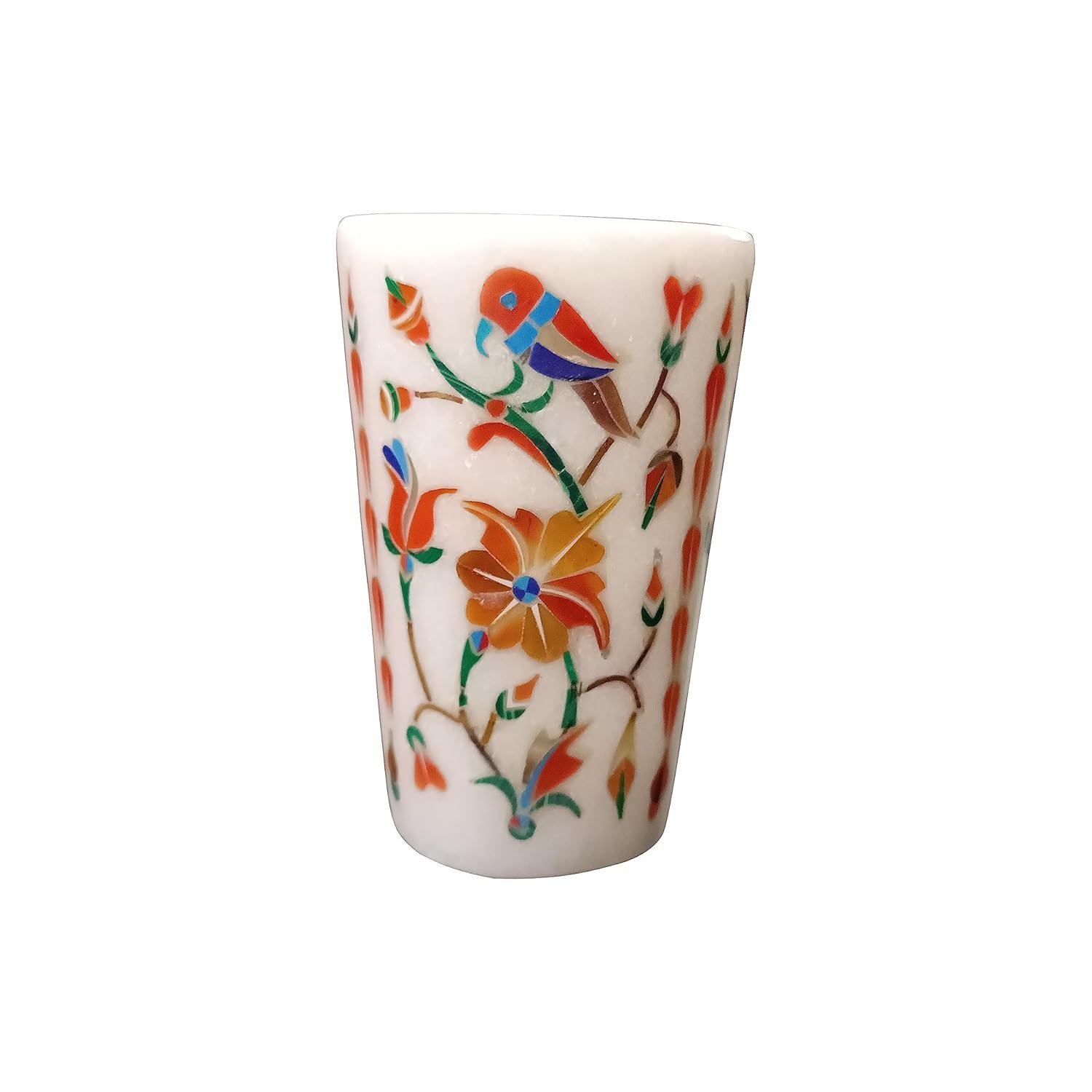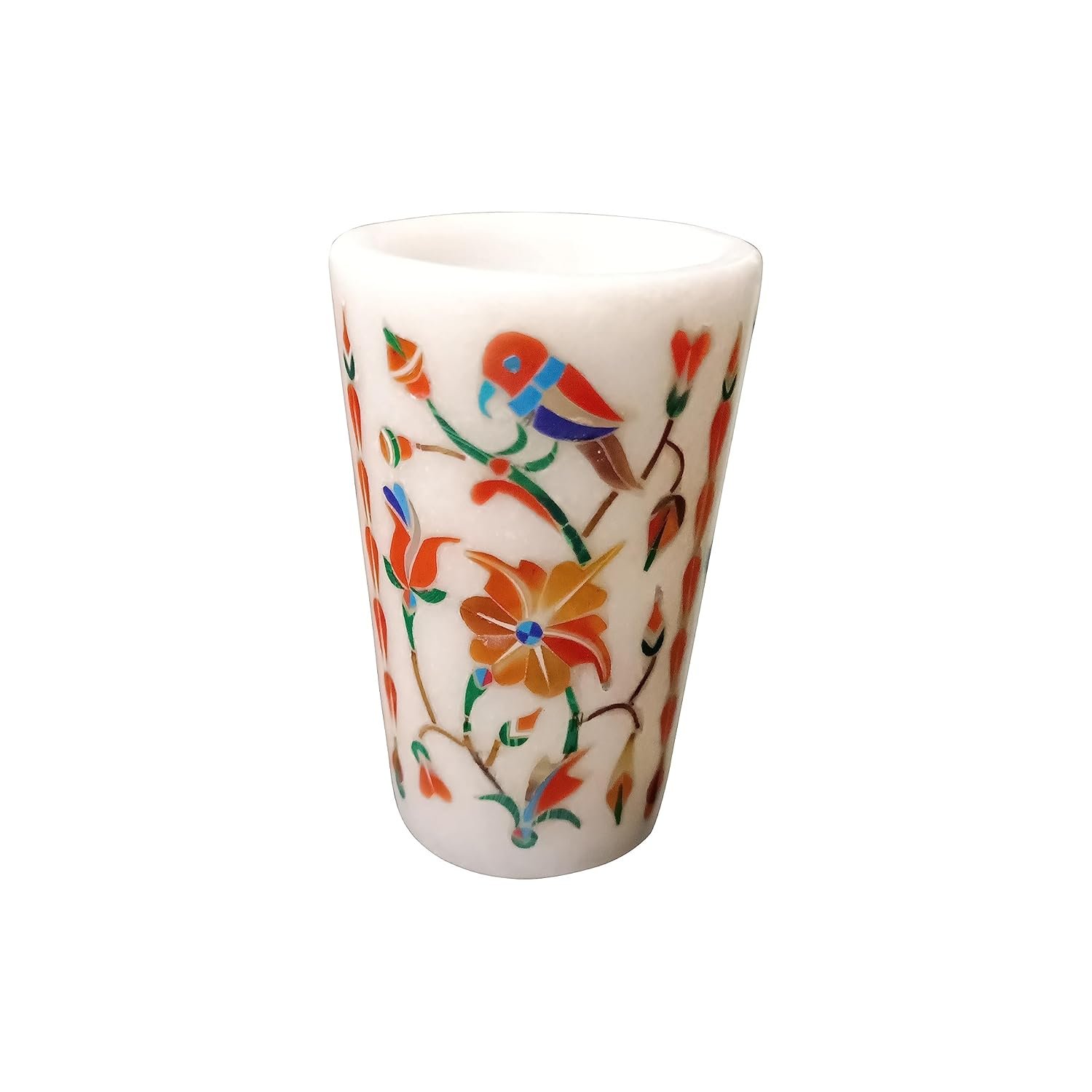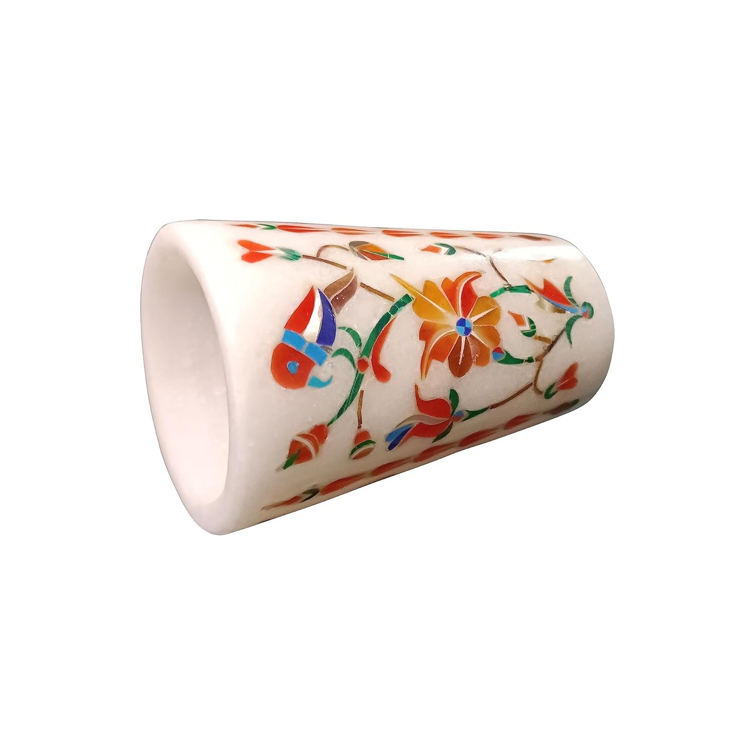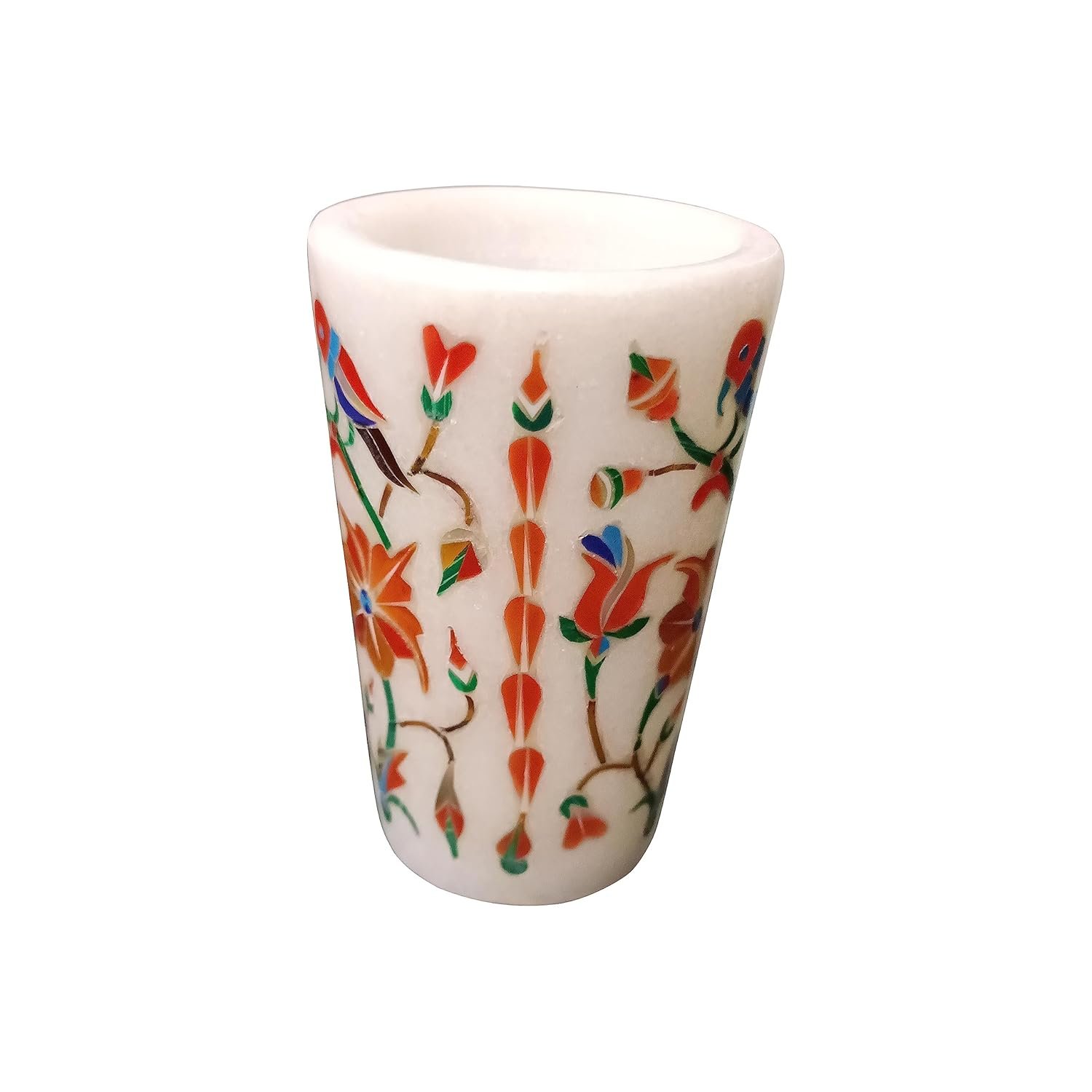 ArtEra Marble Handicrafted Inlaid with Semi-Precious Stones Decorative Glass (3 * 2 INCH) | Piera Dura Handmade Marble Glass Showpiece (Style 01, Agate)